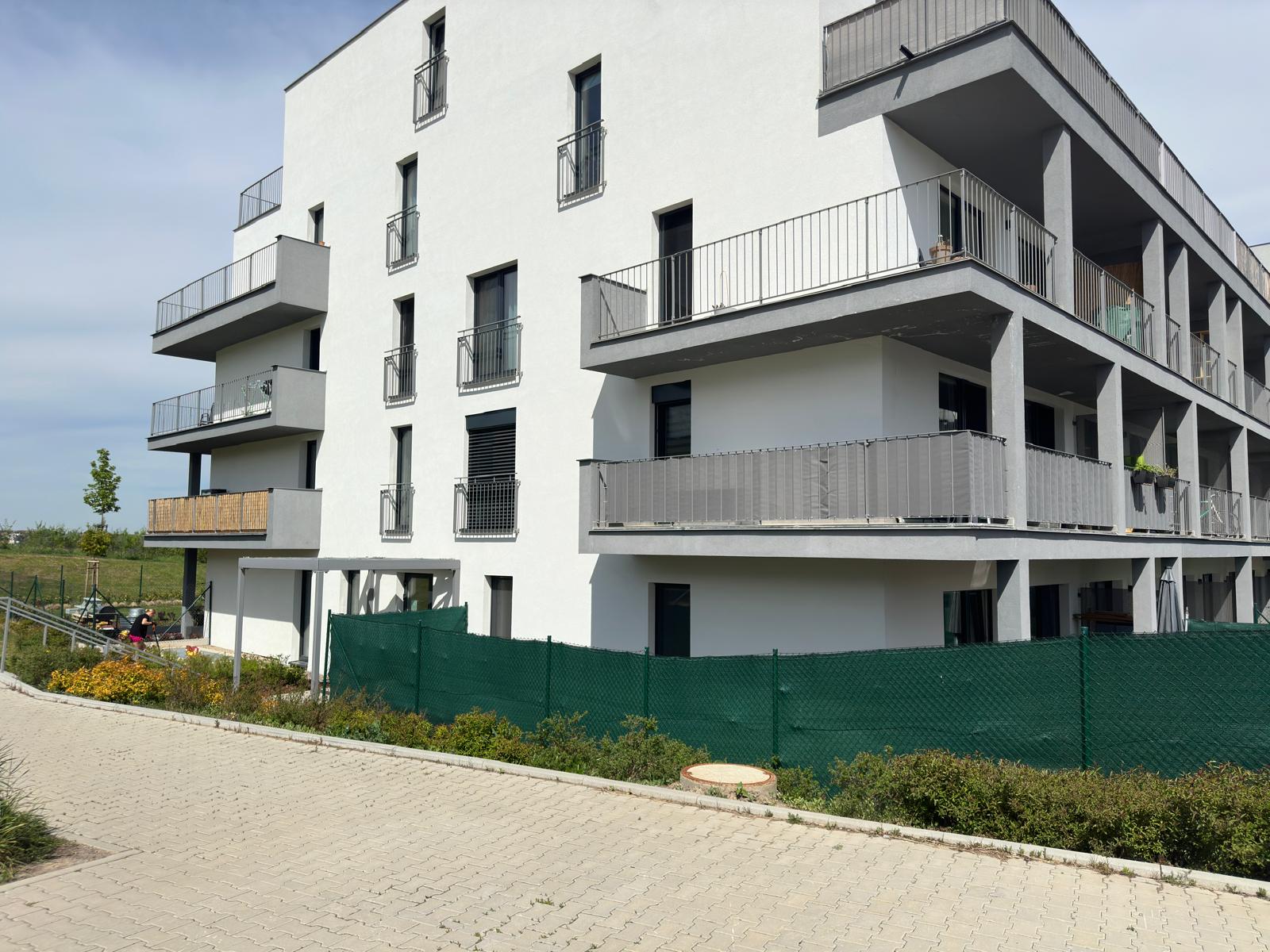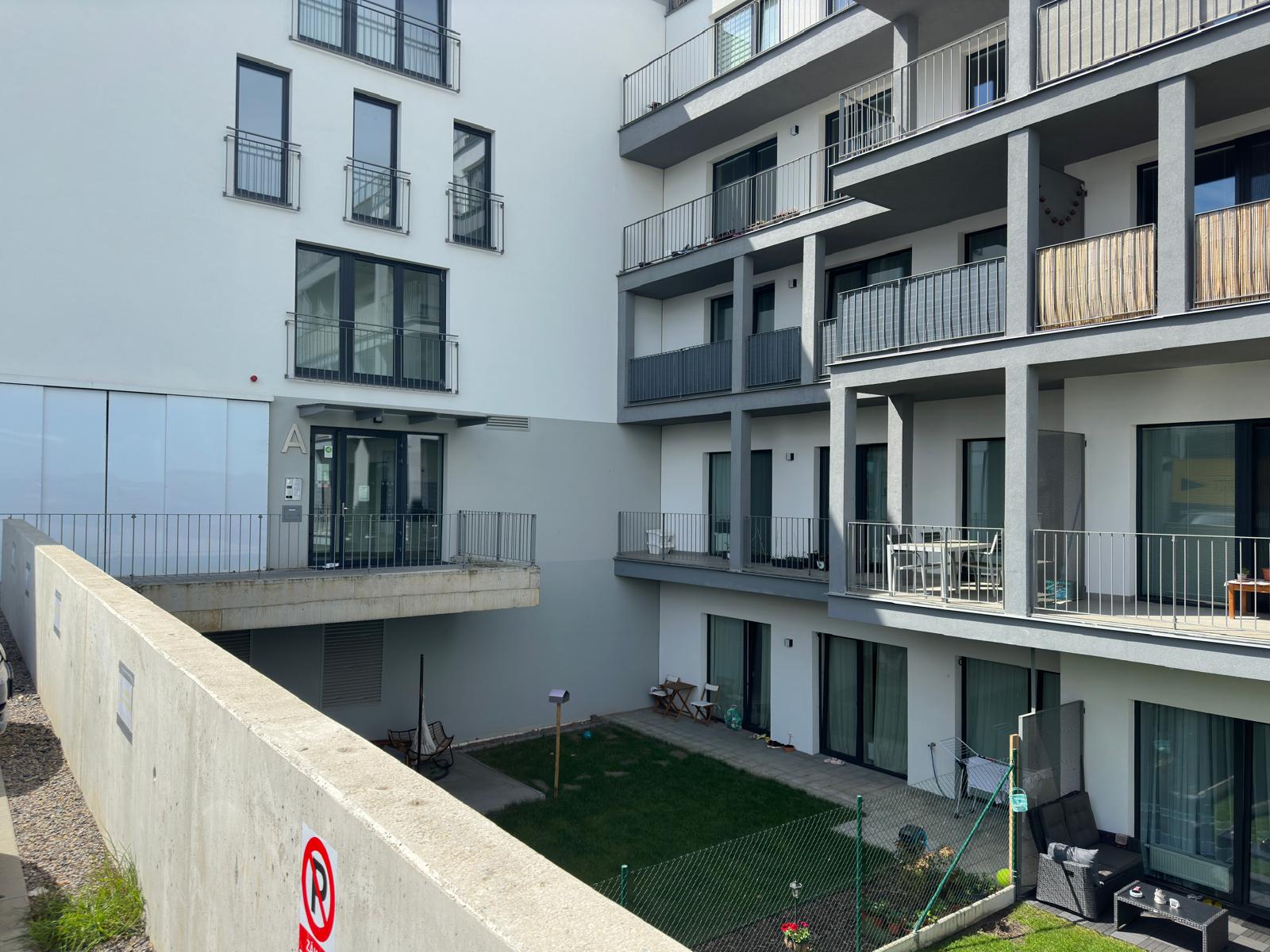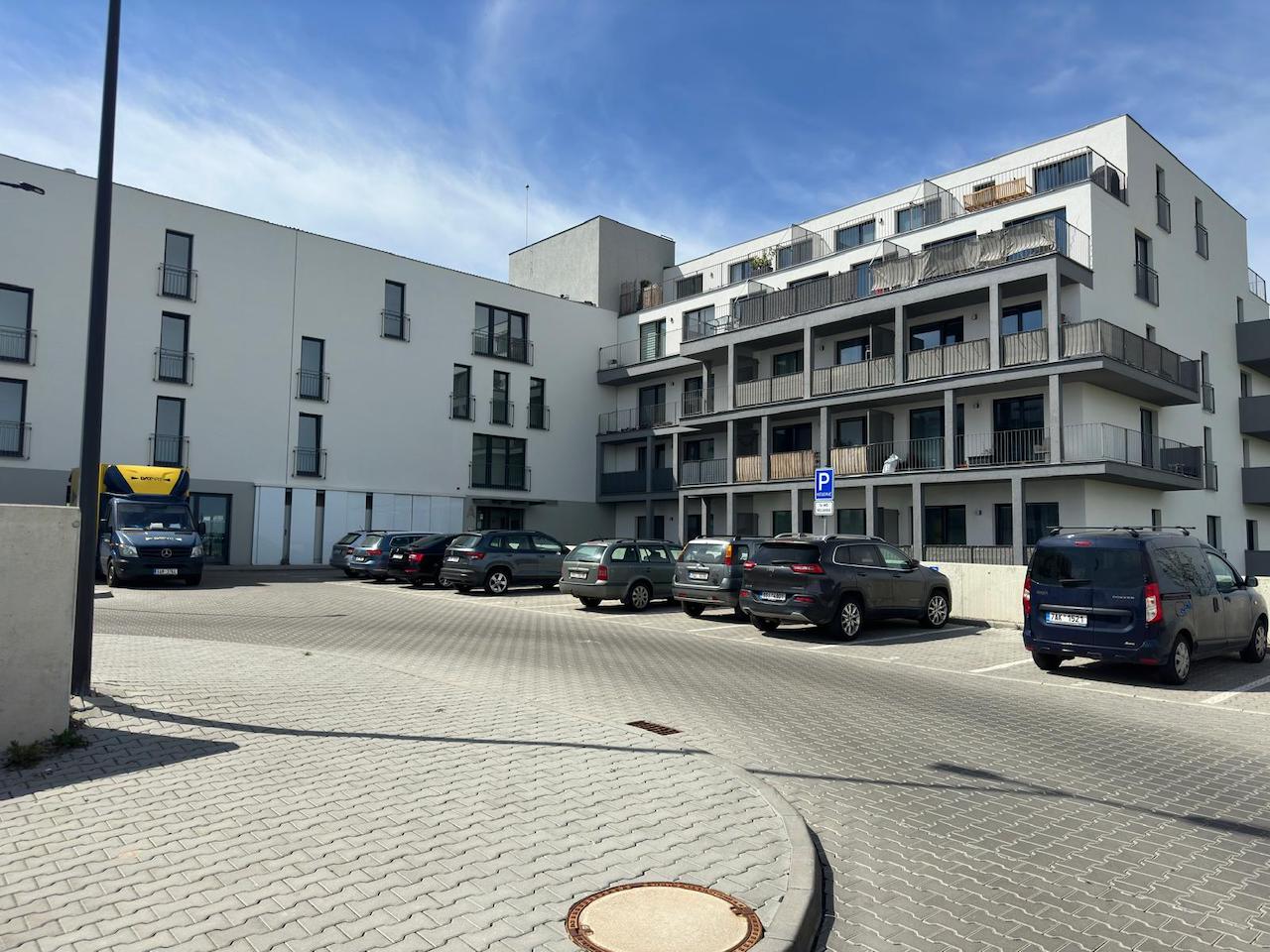 Attractive, studio 1+kk/B/basement/parking space with an area of 47.97m² (apartment 36.70m² + balcony 7.67m² + cellar 3.6m² + parking space) located on the 3rd floor of the new Velvaria Residence building Velvarská street. The apartment consists of an entrance hall, a living room with a kitchenette with a modern kitchen unit with built-in appliances: (hob - 2 plates), electric oven, fridge with freezer, hanging hood, bathroom with bathtub and connection for washing machine and dryer and separate toilet. The floor coverings of the apartment consist of a floating laminate floor and tiles.