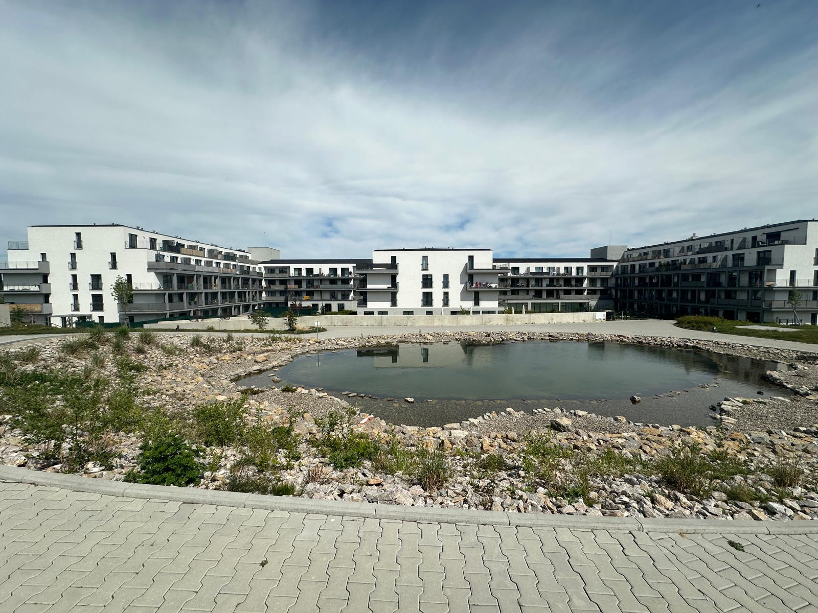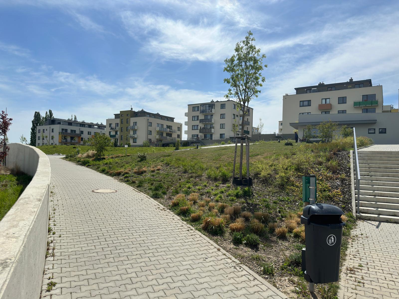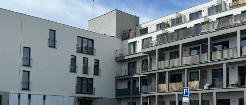 Attractive, studio 1+kk/B/basement/parking space with an area of 47.97m² (apartment 36.70m² + balcony 7.67m² + cellar 3.6m² + parking space) located on the 3rd floor of the new Velvaria Residence building Velvarská street. The apartment consists of an entrance hall, a living room with a kitchenette with a modern kitchen unit with built-in appliances: (hob - 2 plates), electric oven, fridge with freezer, hanging hood, bathroom with bathtub and connection for washing machine and dryer and separate toilet. The floor coverings of the apartment consist of a floating laminate floor and tiles.
