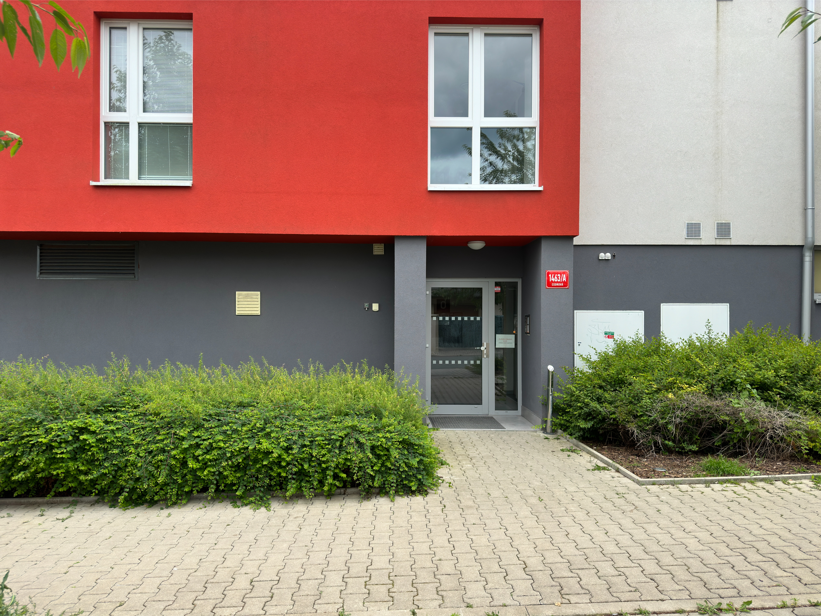Very nice apartment 2+kk/B + spacious storage room , own covered parking space, 65m2 (apartment 61.4m2 + storage room 3.6m2) in an apartment complex in Prague - West, Jesenice, Cedrová street. The apartment is located on the 3rd floor of a new brick building from 2017 and is oriented to the east. It consists of an entrance hall (shoe rack, hangers), a living room with a kitchenette (custom-made built-in kitchen unit - induction glass- ceramic hob, electric oven, hood, dishwasher and fridge-freezer, bedroom (wardrobe), bathroom with shower ( toilet), separate toilets (washbasin, toilet).